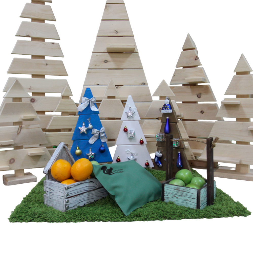 • Новогодняя деревянная ёлка с полочками Хотите удивить дорогого Вам человека в канун Нового года? Предлагаем вам большой выбор аксессуаров из кедра, которые не только запомнятся в качестве ценного подарка, но и вполне могут украсить праздничный стол, разнообразить любой офис, стать привлекательным атрибутом в фотостудии. Рекомендуем ёлку из кедра для домашнего творчества с детьми. Создайте неповторимую, единственную в своём роде новогоднюю красавицу, играя с ребёнком. Это внимание и поделку он запомнит навсегда...Уж, поверьте! Деревянная елочка, по Вашему желанию, может быть покрашена в зеленый, белый, серый, фиолетовый цвета или покрыта бесцветным маслом, воском, лаком. Дополните новогоднюю красавицу гирляндой, шарами, бантами, и она засверкает по-новому. Цена ёлки указана без учета украшений. Украшения, представленные на фото, могут отличаться от имеющихся, необходимо заранее согласовывать перечень игрушек с менеджером отдела продаж. При заказе украшений цена увеличивается на 50%.