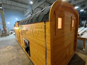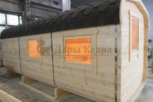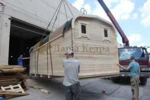 Данная опция позволяет доставить баню в труднодоступные места, куда выгрузка в собранном виде невозможна. Комплект для сборки обязательно полностью собирается на производстве, во избежание любых, даже малейших несостыковок, затем разбирается и нумеруется каждая деталь. Процесс сборки бани занимает примерно 1-2 дня, силами 2-3 человек (в зависимости от размера бани).