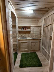 При обустройстве кемпинг-домов и габаритных бань (эксплуатация в качестве летнего домика) обратите внимание на шкаф, он точно вам пригодится для размещения вещей. Внутри - полки и штанга для аккуратного размещения одежды. Высота - 1,8 м, ширина - 0,9 м, глубина - 0,45 м.