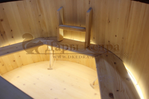 Эффектная подсветка, посредством встроенной, влагозащищённой светодиодной ленты класса IP68. Идеально подходит для круглых купелей. Источник света скрыт от глаз, яркость освещения и цвет можно менять с пульта на расстоянии до 5 метров. Также есть автоматический режим плавной смены цветов, похожий на северное сияние. Хотите удивить близких и друзей? Тогда это ваш вариант!