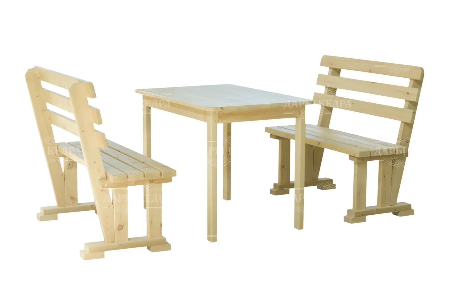 Комплект уличной мебели "Стол с лавками" Материал: алтайский кедр Длина: 1500 мм Высота стола: 780 мм Высота сиденья лавки: 400 мм Ширина столешницы: 900 мм Ширина сидений: 400 мм Толщина столешницы: 40 мм