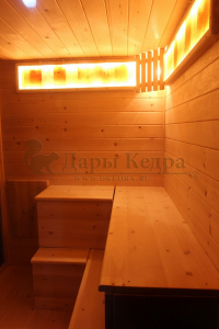 Нагреваясь, древесина кедра выделяет полезные вещества-фитонциды, которые благотворно влияют на организм в целом и укрепляют иммунитет.
