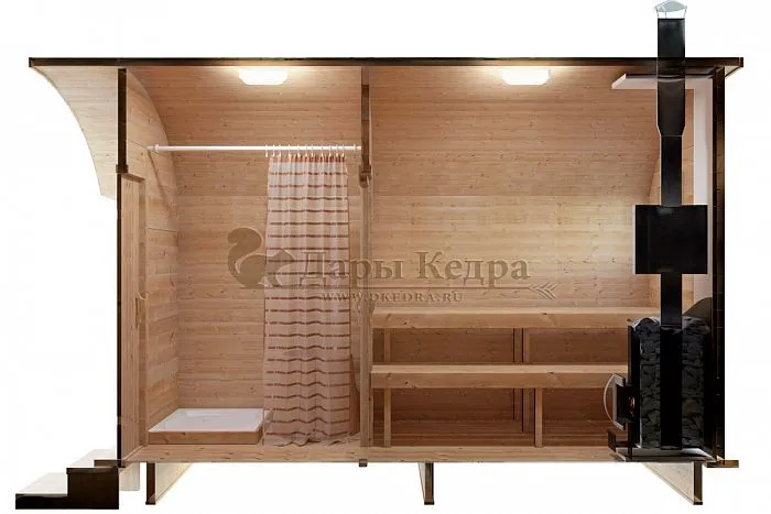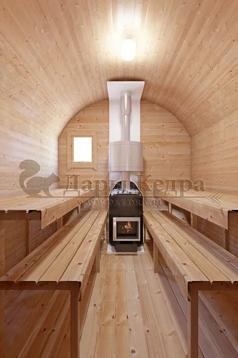 - Баня-бочка в виде буханки - это сочетание красоты и комфорта по доступной цене.