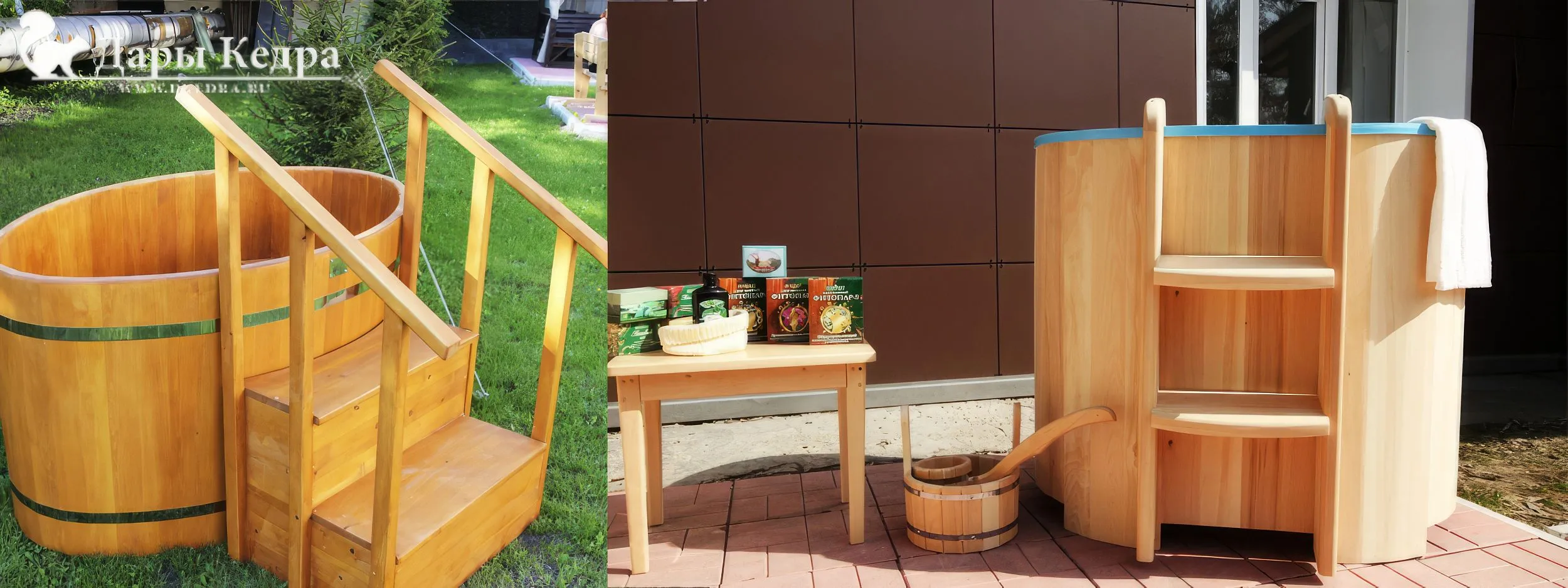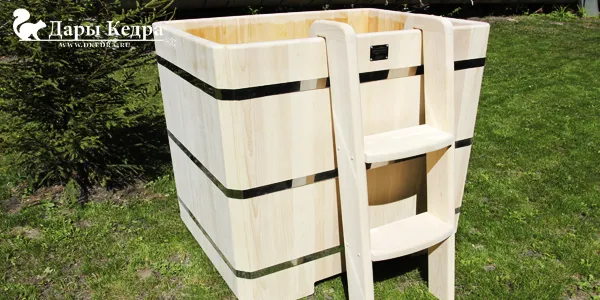 Конструируя модели, мы продумываем всё до мелочей. Для безопасного погружения и комфорта внутри есть сиденье, лестницы предусмотрены, как снаружи, так и внутри. Купель поставляется в разобранном или готовом виде. Разборные части легко соединяются. При разбухании или усыхании дерева натяжение обручей регулируется с помощью натяжных болтов. К изделию прилагается подробная инструкция по уходу за древесиной.